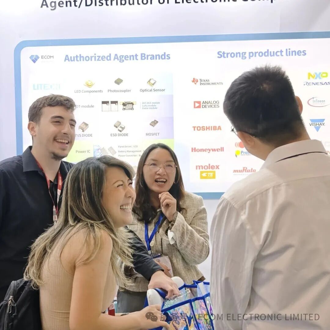 Exhibition | ECOM ELECTRONIC Latest News on FIEE2025 2025/9/10 Exhibition | ECOM ELECTRONIC Latest News on FIEE2025 2025.9.9-9.12 FIEE 2025 @ECOM BOOTH:C40 Hi, dear friends. I'm TC BOY. ECOM Electronic has finally welcomed the FIEE exhibition in September. How's the situation on site? Come and have a look with me. To provide an excellent experience for the on-site visitors, the exhibition team of ECOM Electronics arrived in Brazil in advance and immediately kicked off the intense preparations for on-site matters right after landing. 01 GET READY Since the very beginning of the exhibition preparation, the planning and preparation team of ECOM Electronics has been fully committed to the construction of the exhibition booth. The planning of each display area and the display of each exhibit have condensed the painstaking efforts of the team members. Everyone has been working day and night just to present our best side on this international stage. Our elaborately - built exhibition booth is looking forward to the exploration by the audience from all over the world. 02 Exhibition Occasion The FIEE 2025 Brazil Electronic & Electric Power Exhibition grandly opened as scheduled on September 9, 2025, and the exhibition site was incredibly bustling! The foot traffic exceeded our expectations, with each day feeling like a grand electronic technology carnival. Professionals and electronics enthusiasts from all over the world gathered here. They stop in front of our exhibition booth:c40, carefully study each new electronic product, with curiosity and eagerness for new technologies shining in their eyes. ECOM Our team members have also been full of enthusiasm all the time, having in - depth exchanges with every visitor, answering their questions and solving their doubts. The on - site atmosphere is warm and orderly. Every participation in an electronics exhibition is like building a bridge, connecting ECOM with partners in the global electronics industry. Here, we not only have the opportunity to showcase ourselves, but also have gained countless valuable feedback and cooperation opportunities. If you are still near the exhibition or have a plan to come, Booth C40 is looking forward to your visit. ABOUT ECOM Ecom Electronic Ltd., is a leading agnet & distributor of high-quality semiconductor and electronic components. ECOM ELECTRONIC are agents of several original factories, that is, Liteon(LED, Optocoupler and light sensor), AI-Thinker(IOT module), MDD(Diode & Transistor), Aisinochip(Security IC & 32bit MCU).As an agent for several brands, we not only provide high-quality products, long-term stable prices and sources, FAE's technical support, efficient and professional services, but also help customers with customization, product updates and iterations, then seizing the opportunity and enhancing customer value! As a distributor of electronic components with years experience, we also have strong and competitive product lines, like the brands of IC components ST, Tl, AD, NXP, Microchip, infineon, Xilinx, Intel, and the brands of memory components Micron, SK Hynix, Fujitsu, Samsung etc.